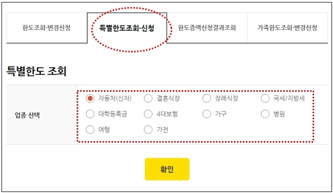 일반 한도 말고도 특별한도를 신청하실 수 있습니다.