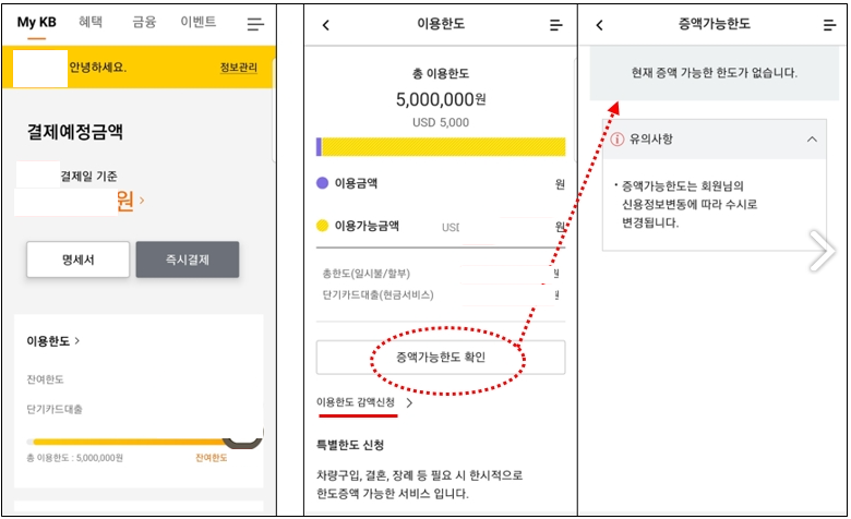 국민은행은 다른 은행들에 비해서 한도를 상향하기가 어렵습니다.