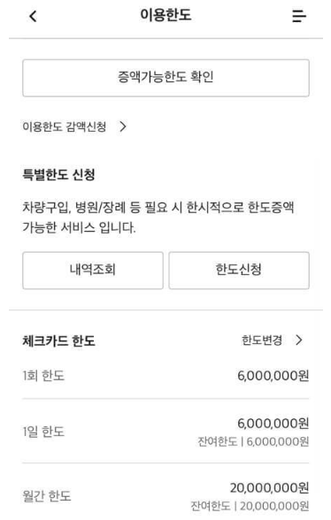 2. 한도변경하지 않고 최대한도 사용하는 방법