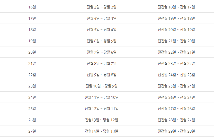 따라서 자신에게 맞는 결제일을 찾는 게 중요하지요.