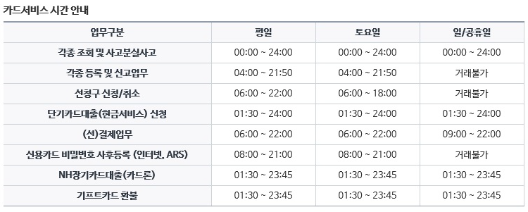 카드 서비스 이용하실 수 있는 시간은 정해져있습니다.