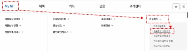 3. [My NH] > [이용한도] > [이용한도 상향조정]