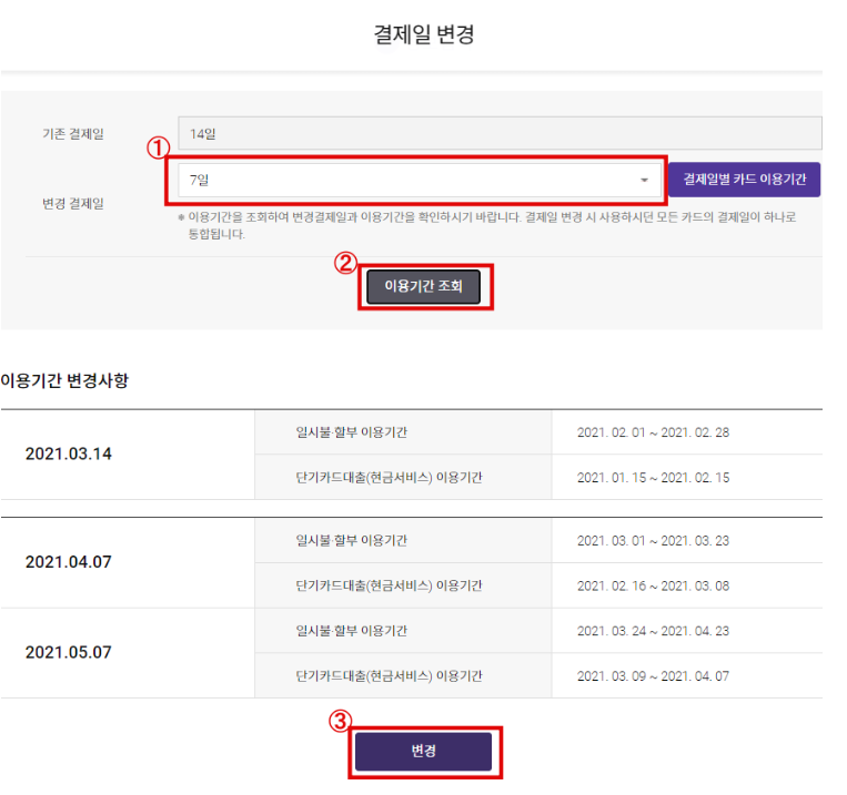 3. 롯데카드 결제일 변경