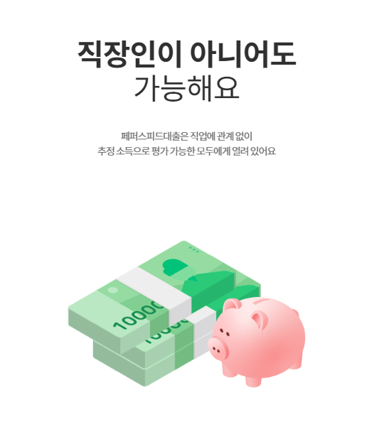 - 대출대상: 만 19세 이상(직장인이 아닌 경우에는 만 30세 이상만 가능). 나이스 신용평점 350점 이상이어야 하고, 추정 소득을 증빙할 수 있는 고객.