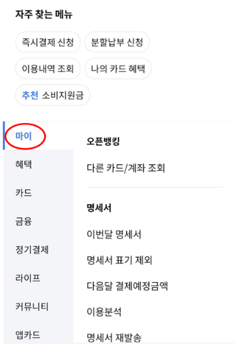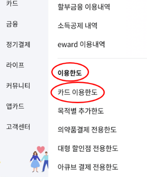 - [이용한도] 칸의 [카드 이용한도]를 눌러줍니다.