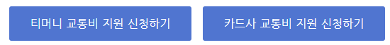아래로 쭉 내리시면 [티머니 교통비 지원 신청하기] 혹은 [카드사 교통비 지원 신청하기] 버튼이 있습니다. 두가지 중에서 편하신 것을 골라서 신청하시면 되겠습니다.
