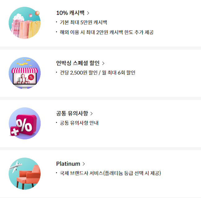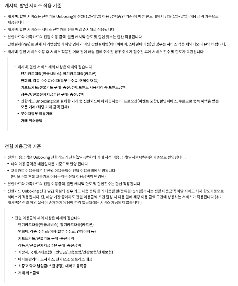 다음은 신한카드 언박싱 혜택입니다.