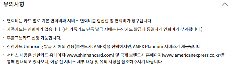 연회비 관련 유의사항은 다음과 같습니다.
