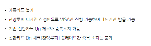 신한은행 잔망루피카드의 유의사항도 한번 살펴보시기 바랍니다.