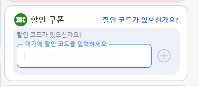 클릭하면 할인 코드를 입력할 수 있는 창이 뜹니다. 코드를 입력하면 옆에 +버튼이 활성화 됩니다.