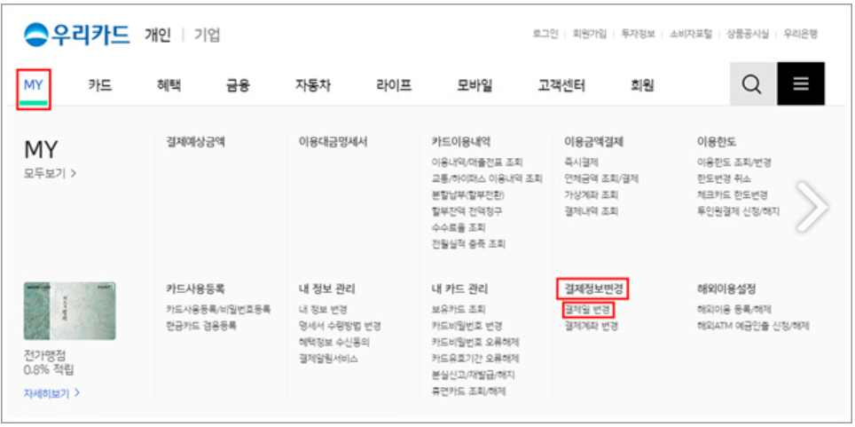 3. 우리카드 결제일 확인 및 변경