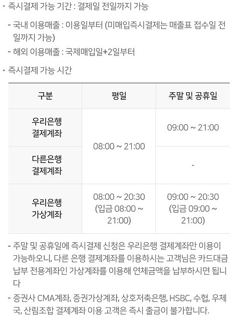 2. 우리카드 대금결제 시간