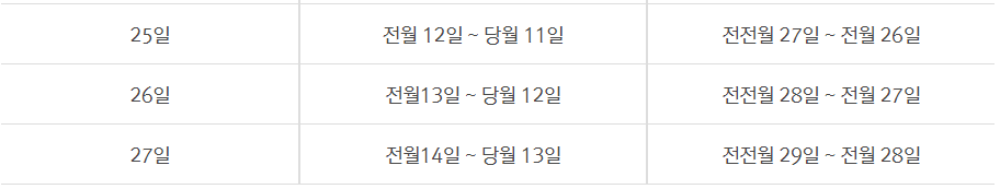 따라서 1~26일 중에 원하시는 결제일을 고르시면 되겠습니다.