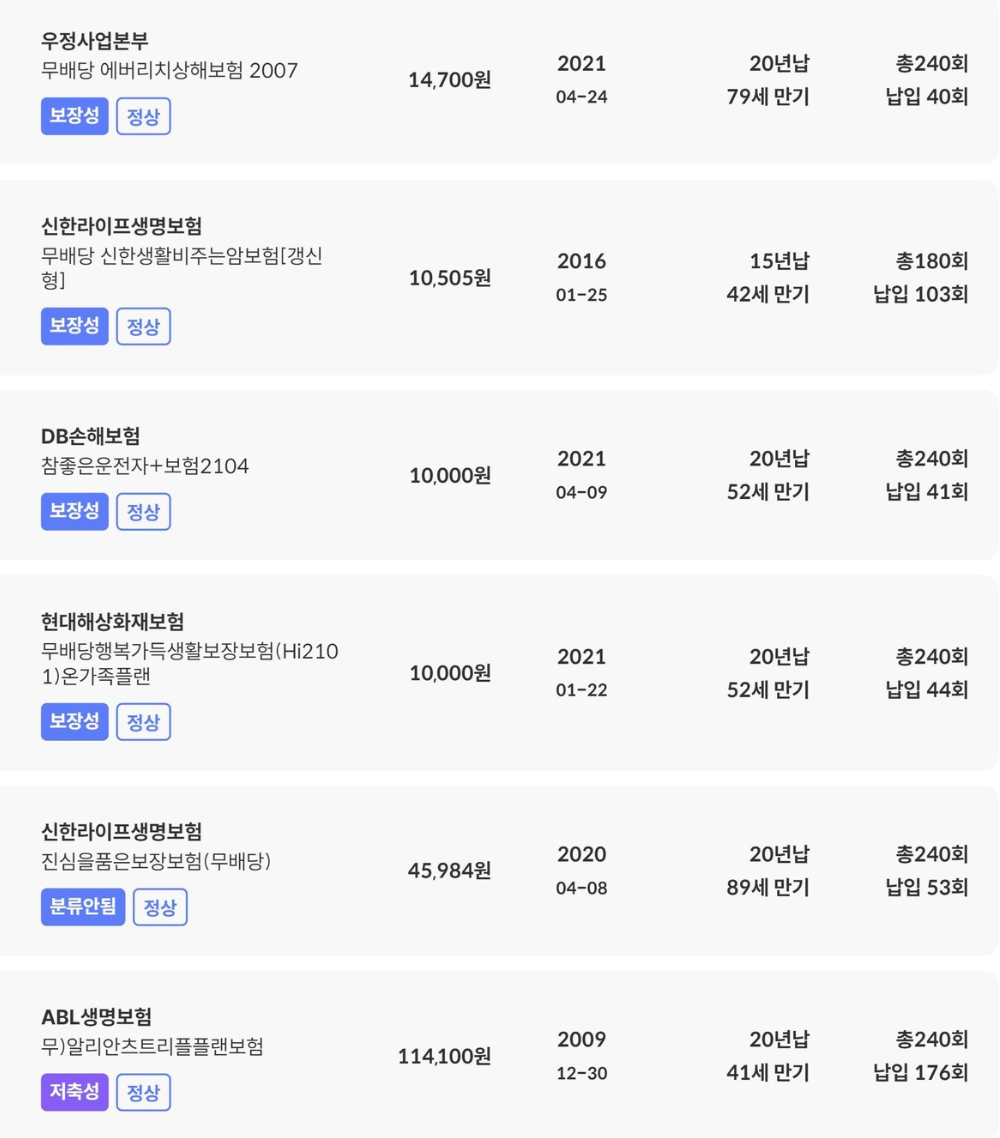근데, 엄마가 몇년전부터 보험설계사로 일하게 되면서 실적때문에 돈은 본인이 낼테니 보험 좀 들어달라고 해서 주기적으로 들었던 내역을 이번에 조회해봤더니 첨부파일이 나왔어