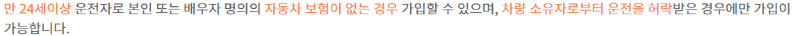다른 보험들의 경우 만 21세부터 가입이 가능한데, 이 보험의 경우 홈페이지 가입 사이트에 '만 24세 이상'이라고 하더군요.
