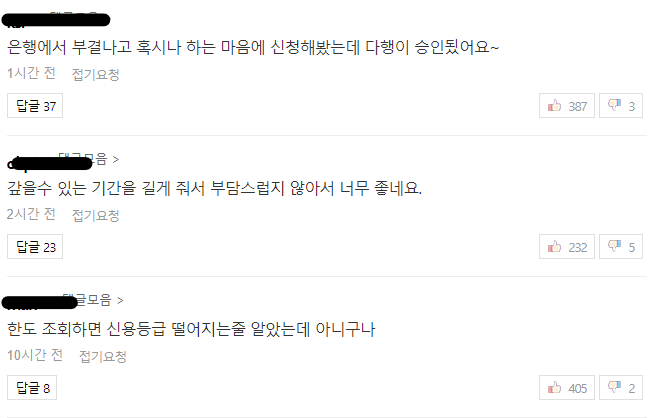 일부 댓글들 가지고 왔습니다. 찾아보니까 보통 은행이나 저축은행에서 부결난 경우, 이 서비스를 이용하시나보더라구요. 그리고 애초에 총 소득이 1억원 이하이신 분들은 97%의 확률로 승인난다고 합니다.