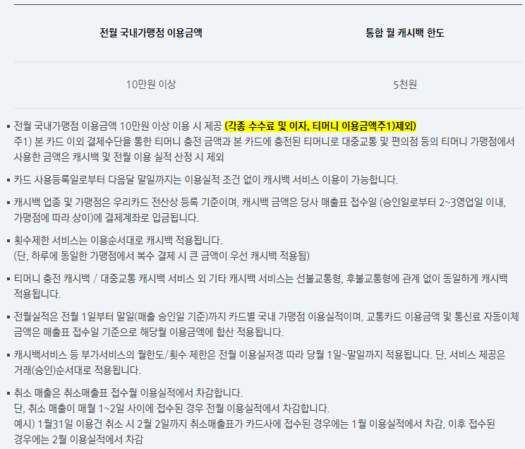 - 현금 충전할 때에는 캐시백은 제외됨