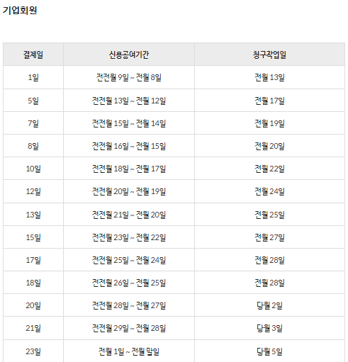 따라서 자신에게 맞는 결제일을 찾는 게 중요하지요.