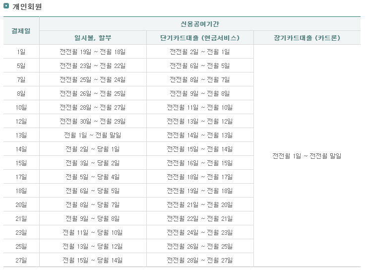 따라서 연체되지 않도록 지갑 사정과 결제일, 그에 따른 이용기간을 면밀히 살펴보는 것이 좋겠습니다.