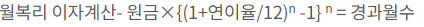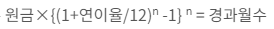 이자지급방식에 따라서 달라집니다. 월복리 이자 계산식은 다음과 같습니다.