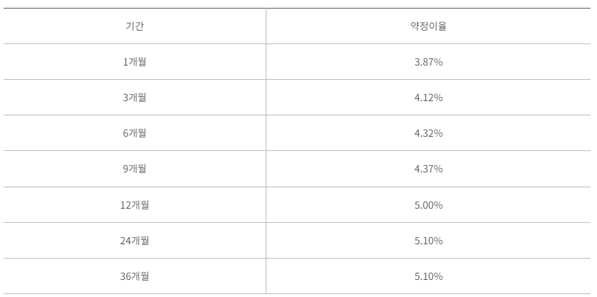 가장 중요한 금리는 한국투자저축은행 지점마다 동일합니다. 기본금리는 다음과 같습니다.
