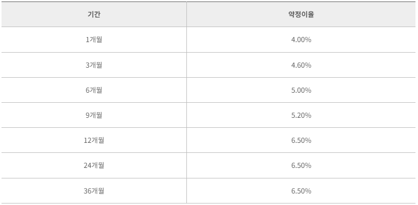 비대면으로 가입하시는 경우는 다릅니다. 이런 경우는 홈페이지 고시금리가 적용되는데요. 현재를 기준으로 보았을 때는 6.5%입니다.