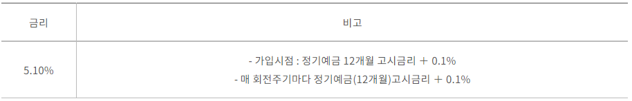 2022년 10월 13일 이후로 만드는 계좌에 적용되는 금리입니다. 기준은 연이율, 세전이율이고 금리 변동시 변경금리가 적용됩니다.