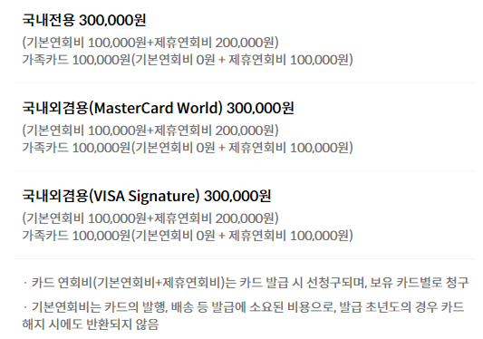 연회비가 싼 편은 아니지만 혜택과 같이 보면 왜 비싼지 알 수 있습니다.