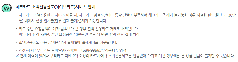 8) 체크카드 소액신용한도 서비스 유의사항