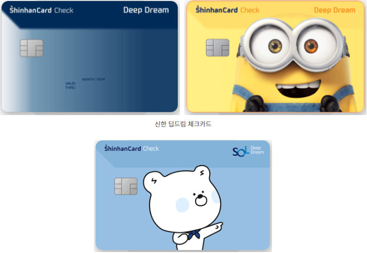 신한 딥드림 체크카드는 여러분들이 흔히 알고 계시는 신한 미니언 체크카드입니다.