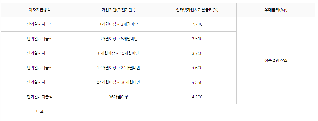 가장 중요한 금리입니다. 만기지급금리를 살펴보면 다음과 같습니다.